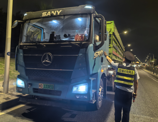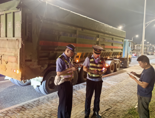 2026年4月14日,于环岛北路设卡拦查闽D13385D,运载建筑废土涉嫌超载,经过磅97.38吨(超重98%),由公安交警部门依法对违法车辆进行处罚。
